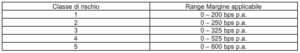 tassi di interesse: Euribor a 6 mesi oltre a un margine che varia in funzione della classe di rischio assegnata all’impresa secondo la tabella che segue: